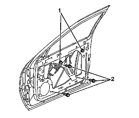 3. Install the three remaining window regulator bolts (2) in order to secure the regulator.