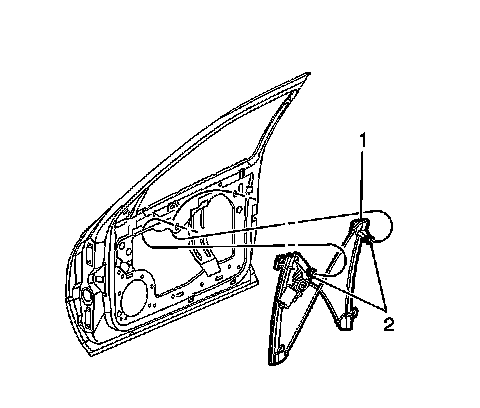 1. Install the window regulator (1) into the door.