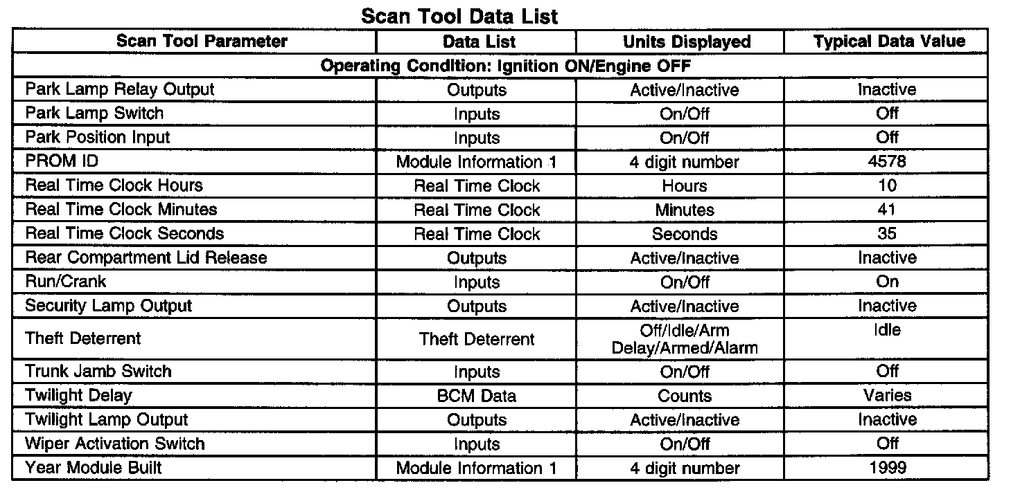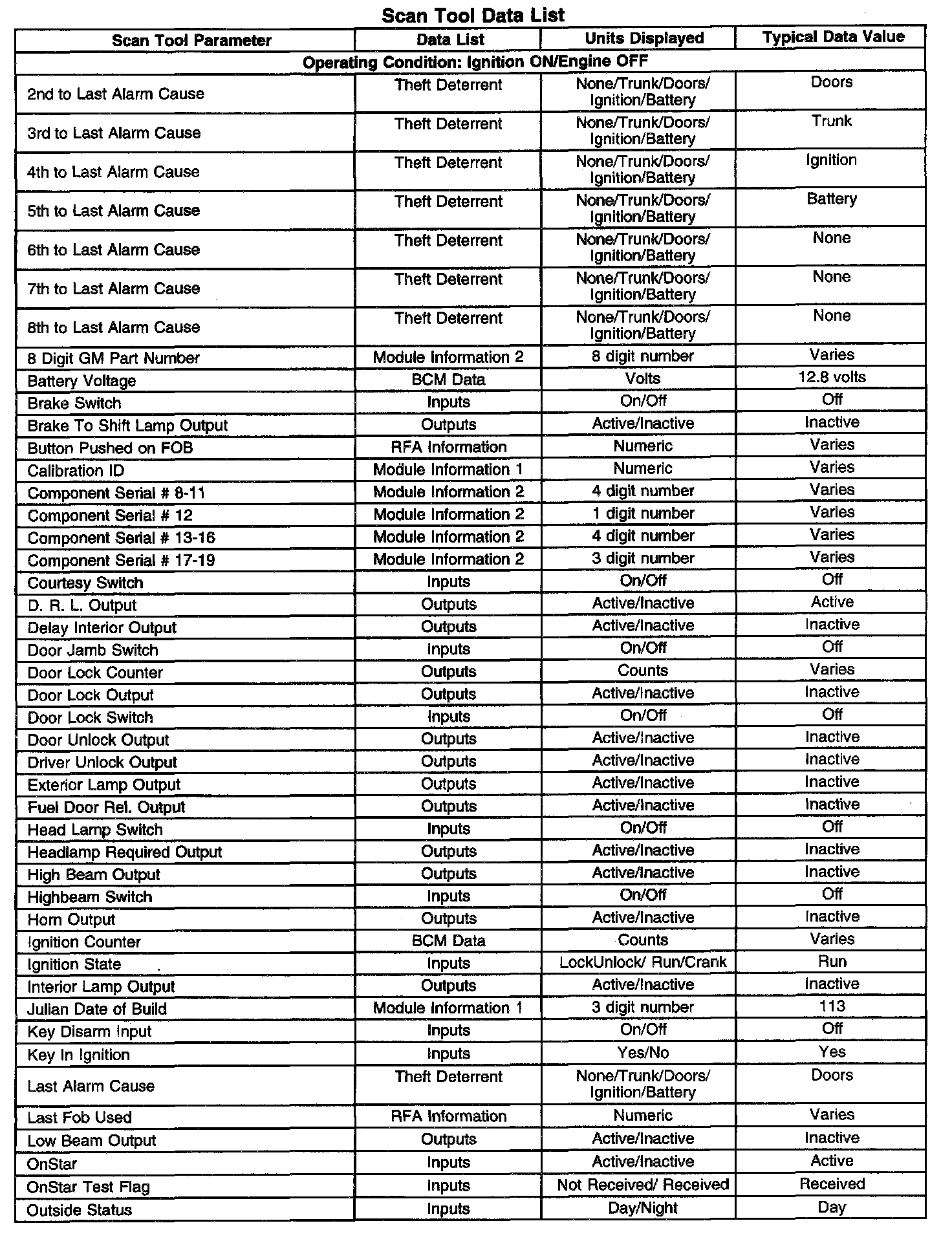 Scan Tool Data List