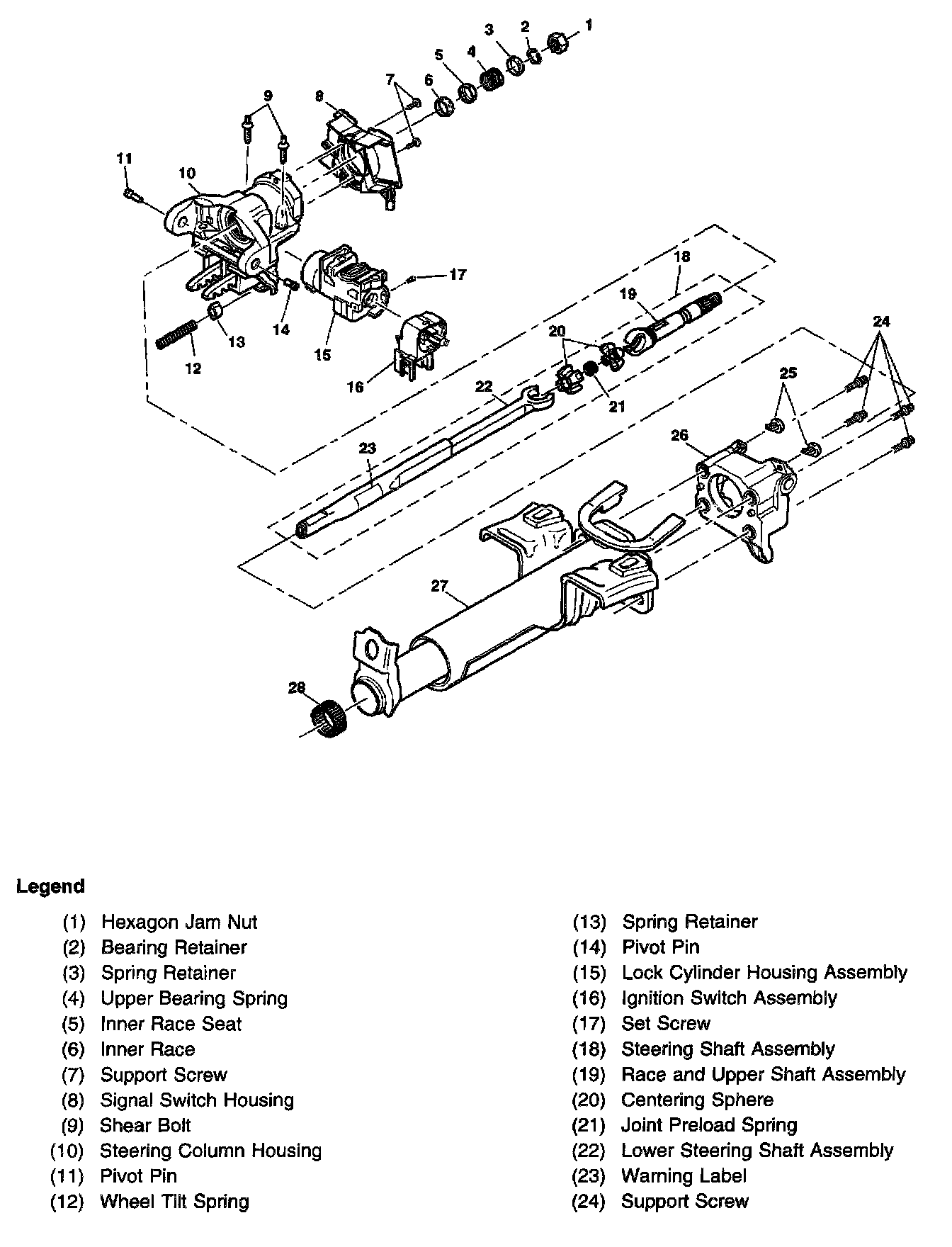 Disassembled View Tilt Steering Column