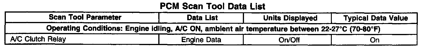 Scan Tool Data List - Powertrain Control Module (PCM)