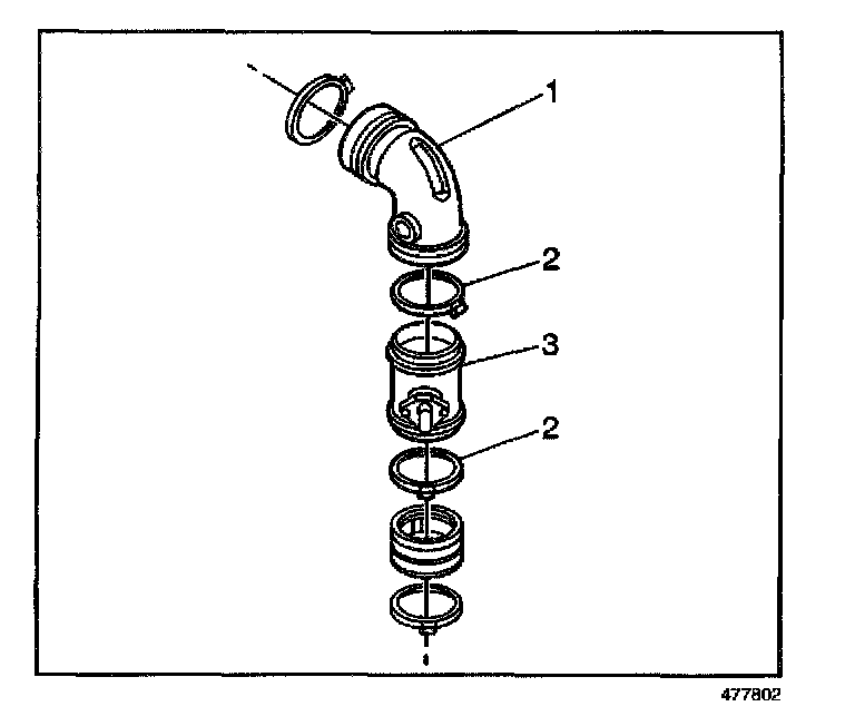 1. Loosen the clamps on the air duct (1) from the air cleaner.