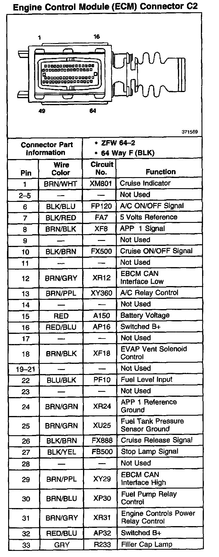 Engine Control Module (ECM) Connector C2 (Part 2 Of 2):
