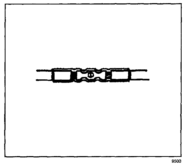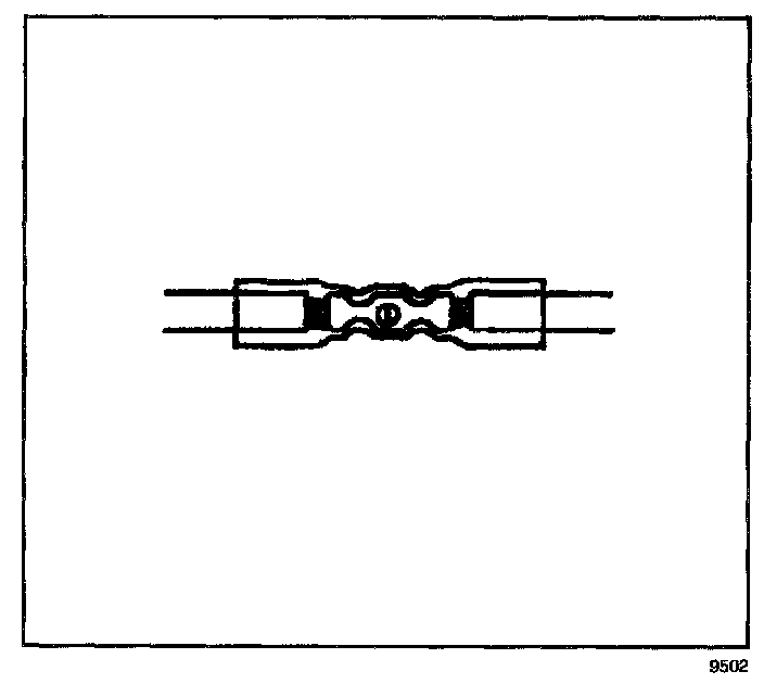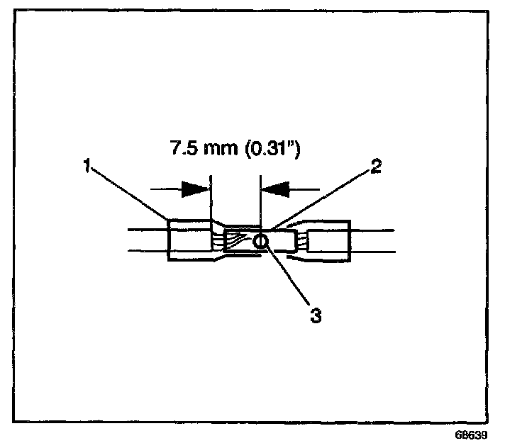 6. Place the splice sleeve in the nest. Ensure that the crimp falls midway between the end of the barrel and the stop. The sleeve has a stop (3) in the middle of the barrel (2) in order to prevent the wire (1) from going further. Close the hand crimper handles slightly in order to firmly hold the splice sleeve in the proper nest.