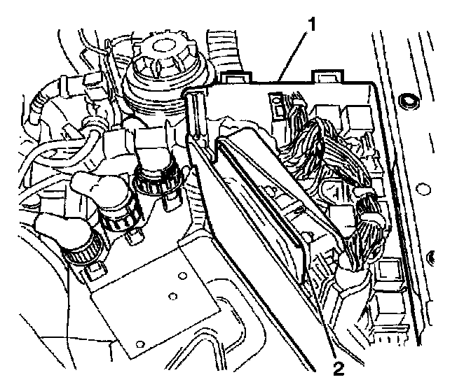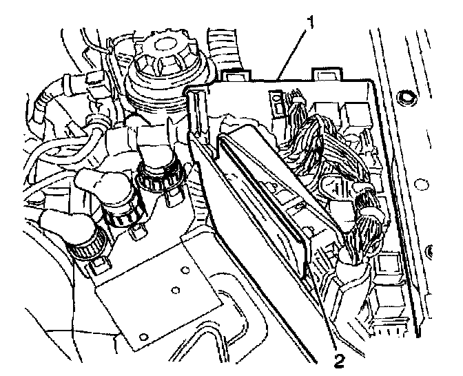 9. Install the ECM (2) into the relay center (1).
