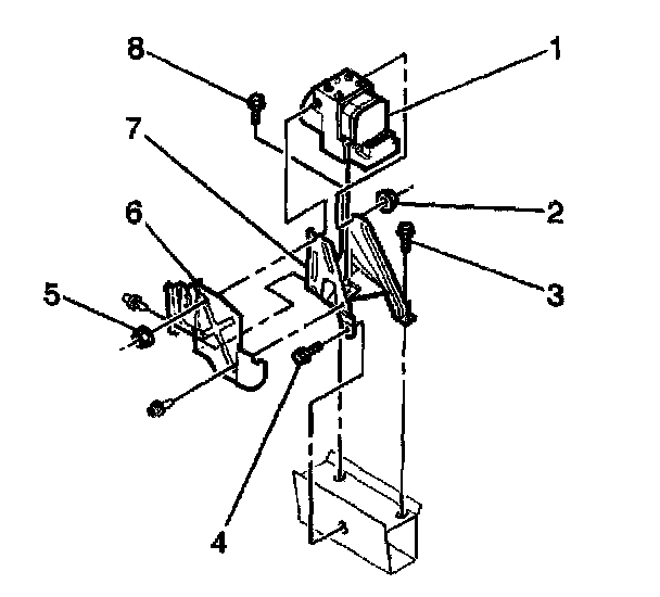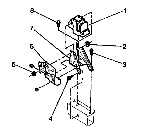 2. Install BPMV and EBCM (1) as an assembly into the BPMV bracket (7). Align the flats of the studs on the BPMV (1) with the BPMV bracket (7). Make sure the BPMV is all the way down onto the lower insulator stud.