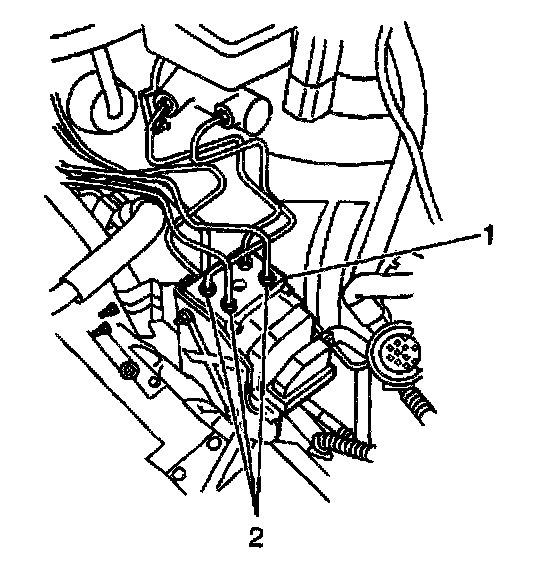 Notice: When removing the brake pressure modulator valve, protect the vehicle exterior from possible brake fluid spillage. Brake fluid can cause damage to painted surfaces.