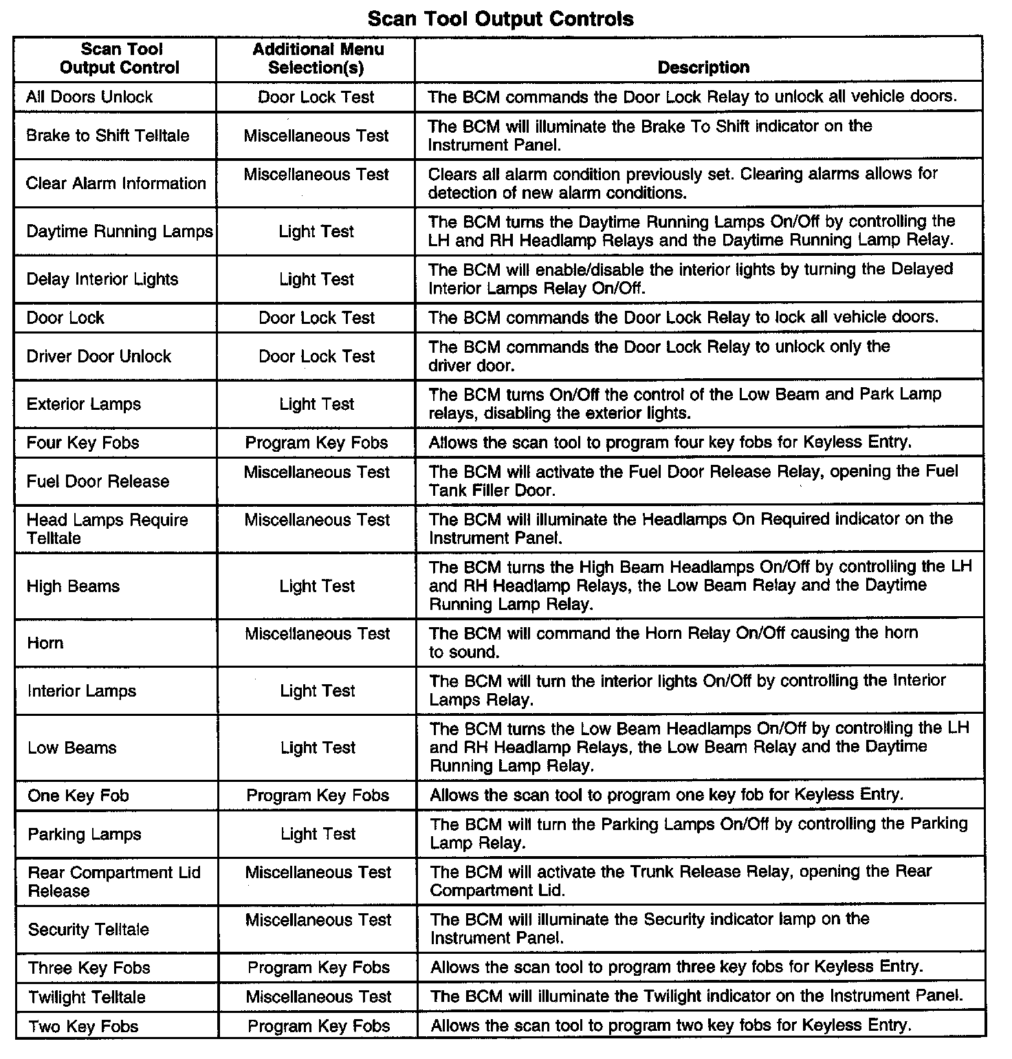 Scan Tool Output Controls: