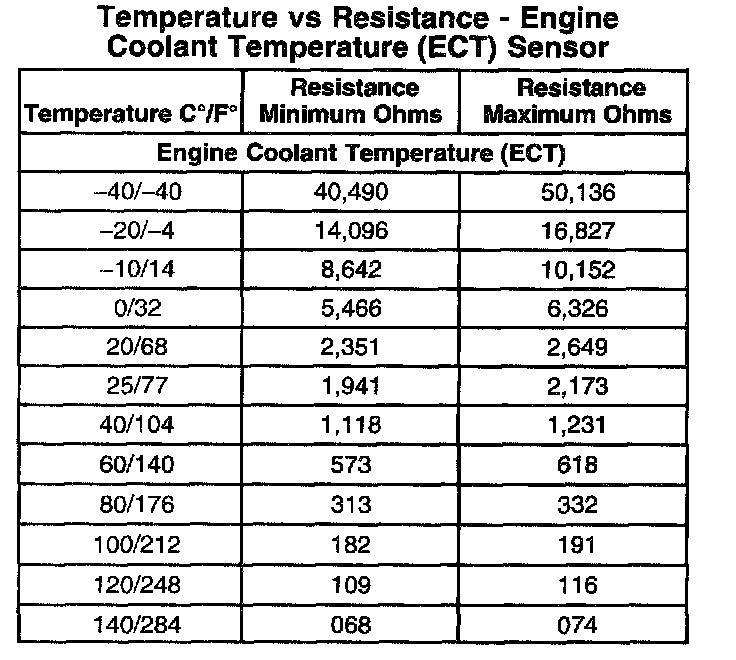 Temperature Vs Resistance - Engine Coolant Temperature (ECT) Sensor: