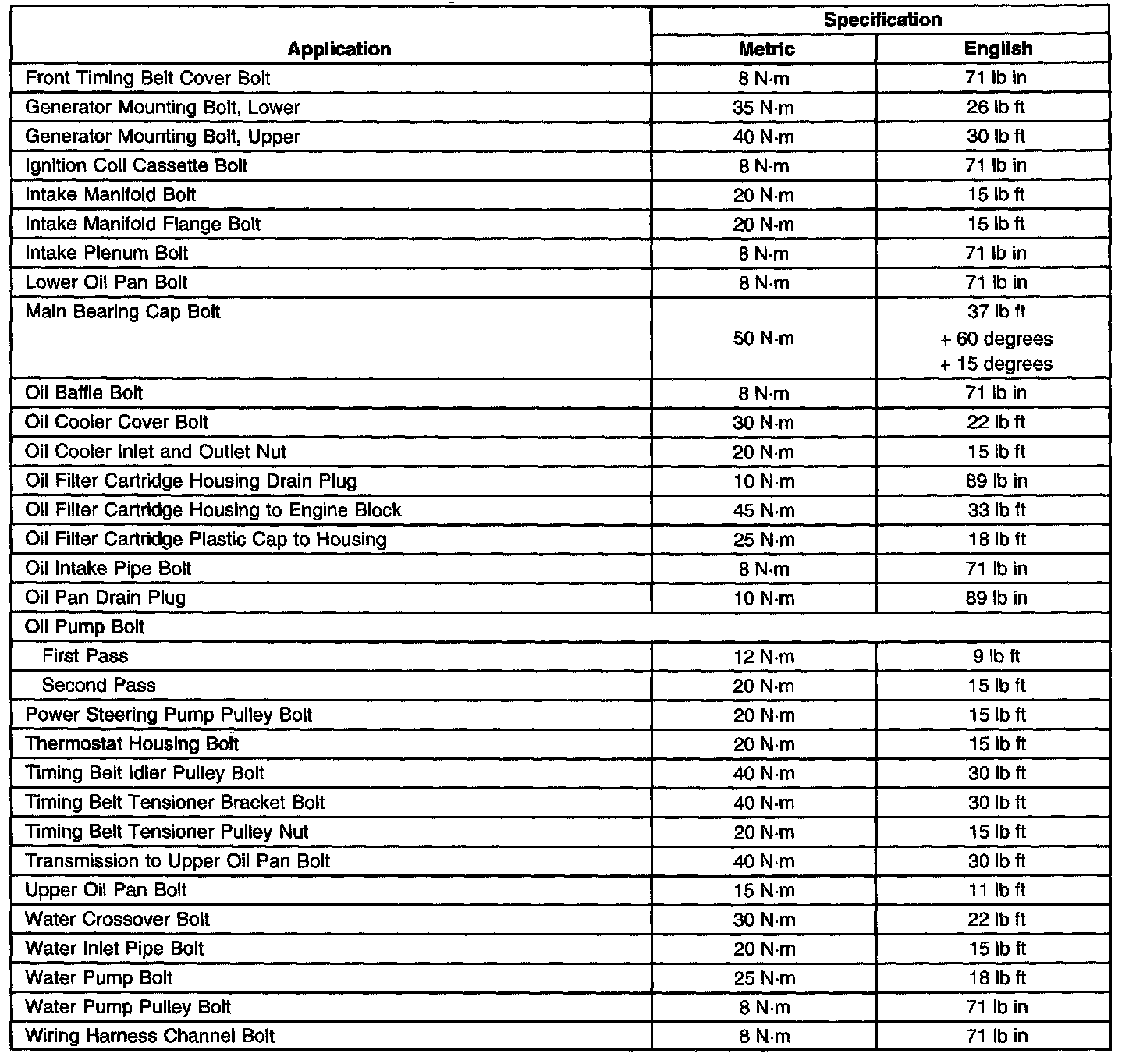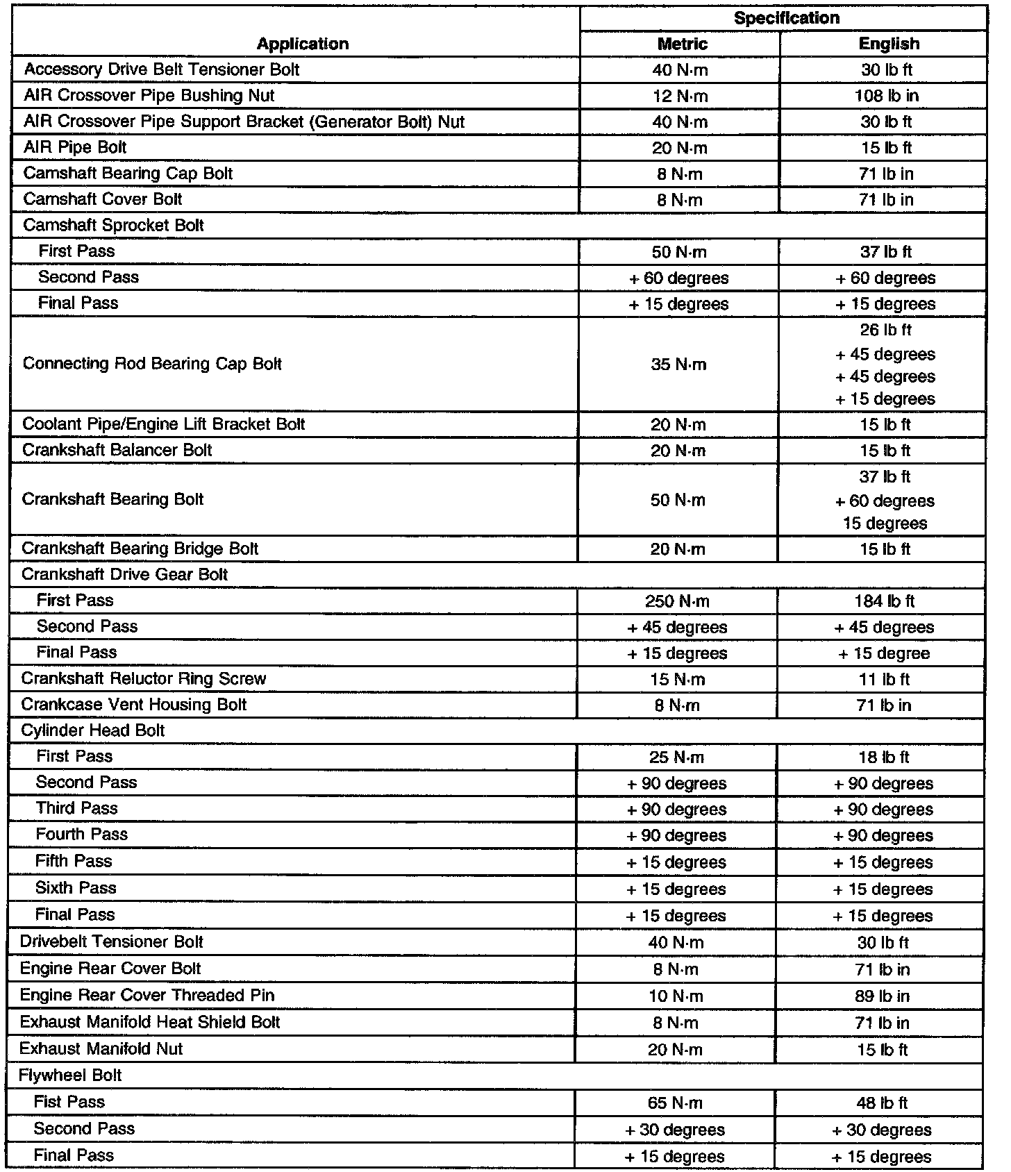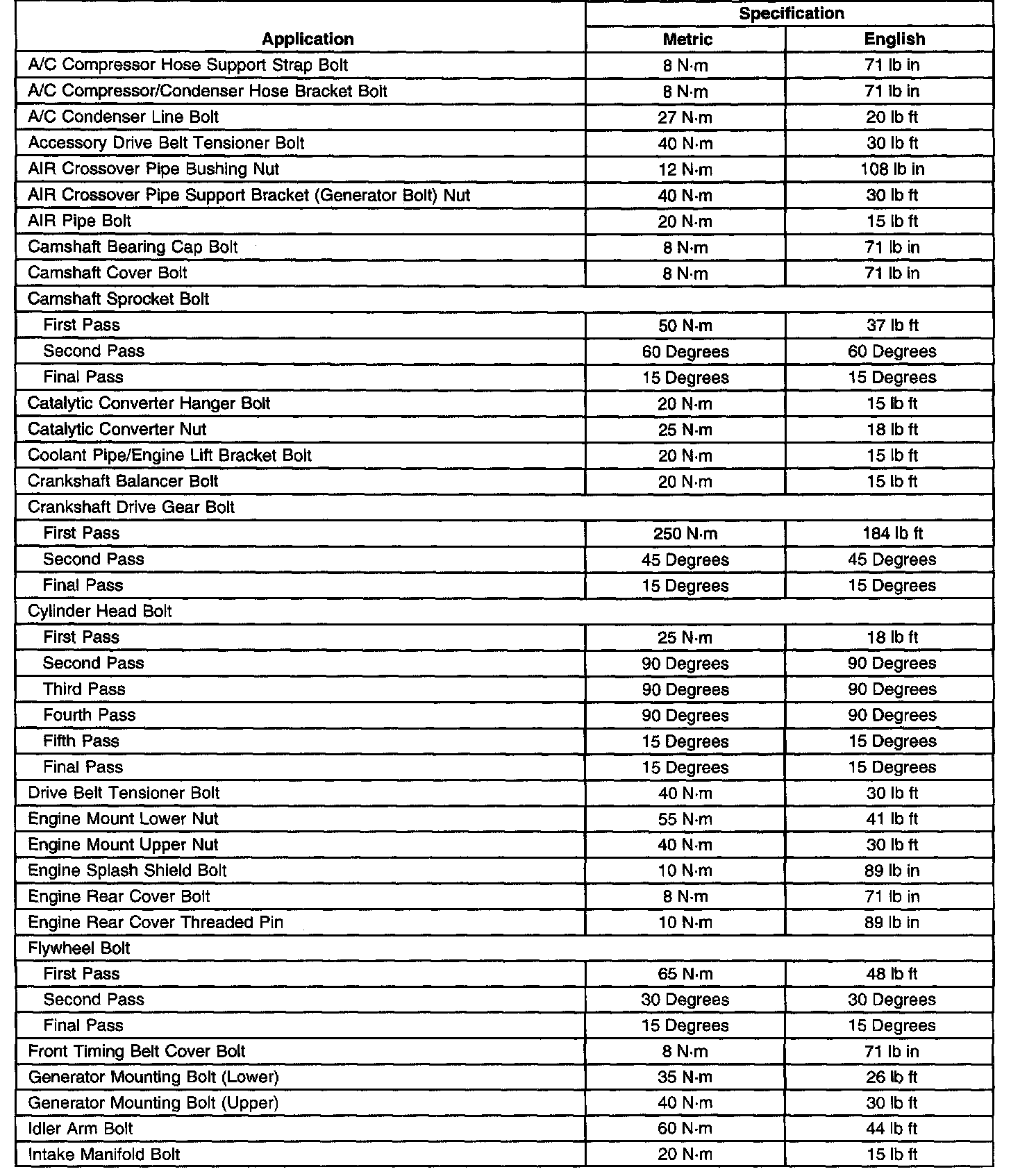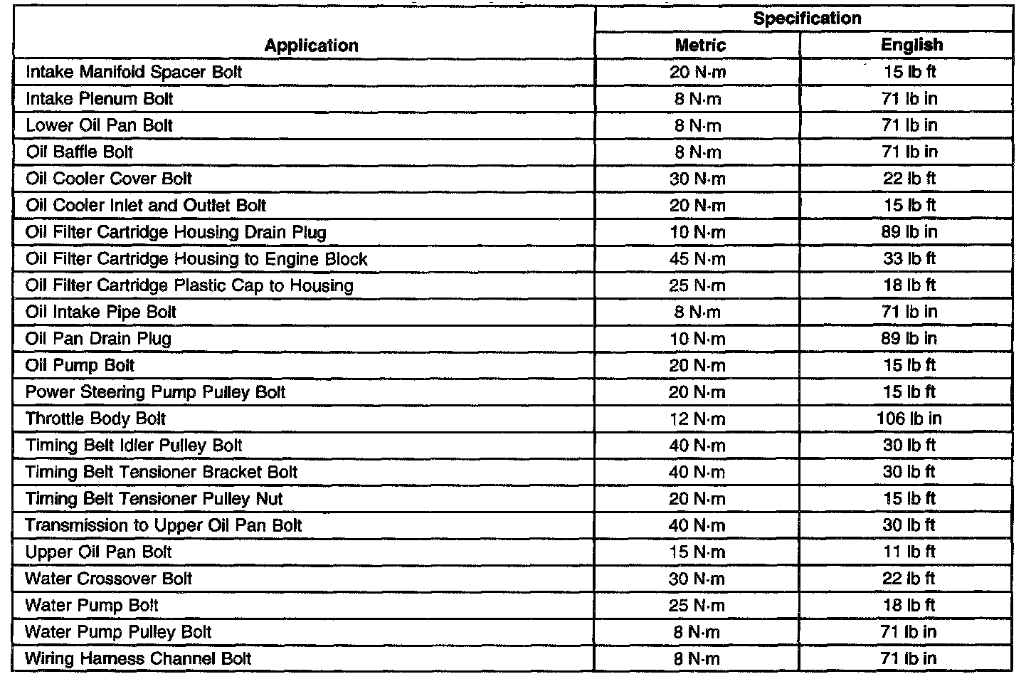 Fastener Tightening Specifications