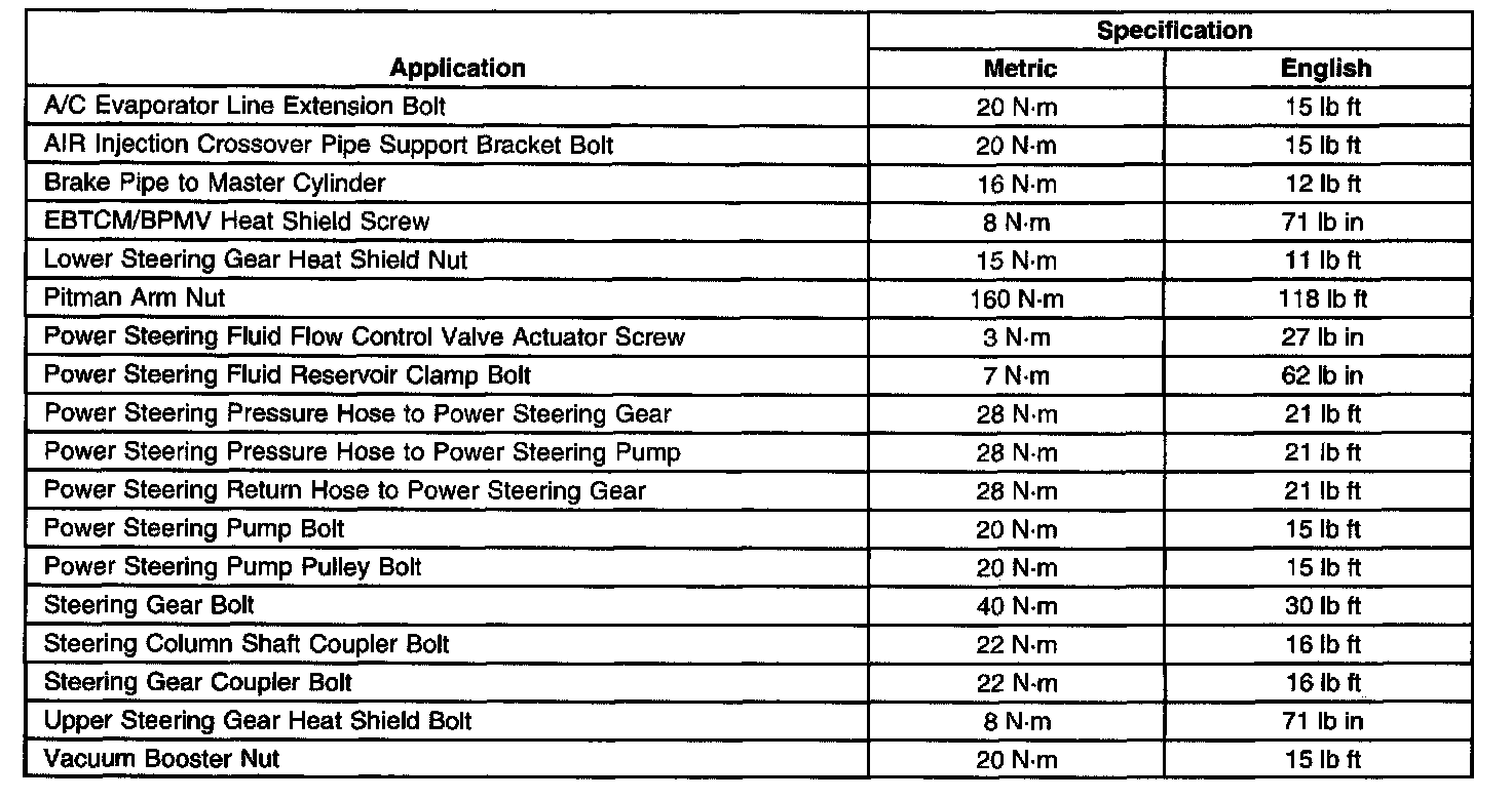 Fastener Tightening Specifications