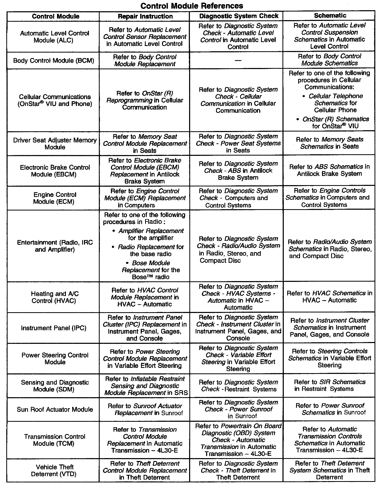 Control Module References