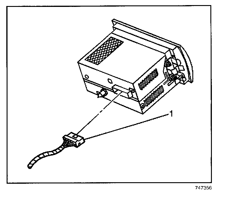 1. Partially install the navigation display in order to connect the electrical connector (1).