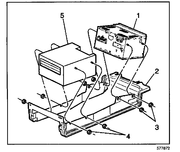 10. Remove the fasteners (4) retaining the navigation data processor (5) to the navigation data processor / radio bracket (2).