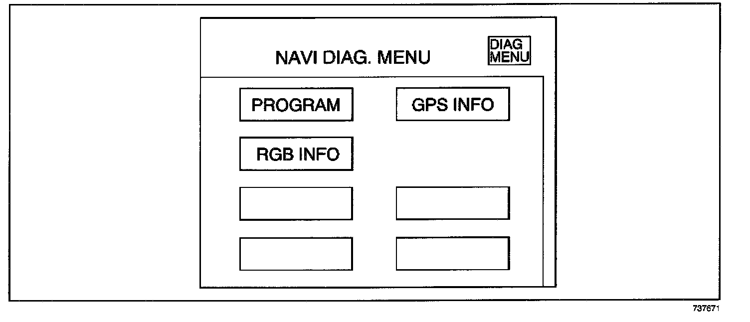Pressing the NAVI button on the Diagnosis Menu screen leads to a screen titled NAVI DIAG MENU. This screen has three buttons and each button, when pressed, leads to a submenu. The three buttons are:
