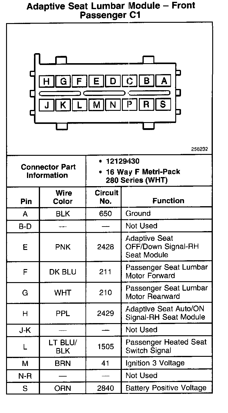 Adaptive Seat Lumbar Module - Front Passenger C1: