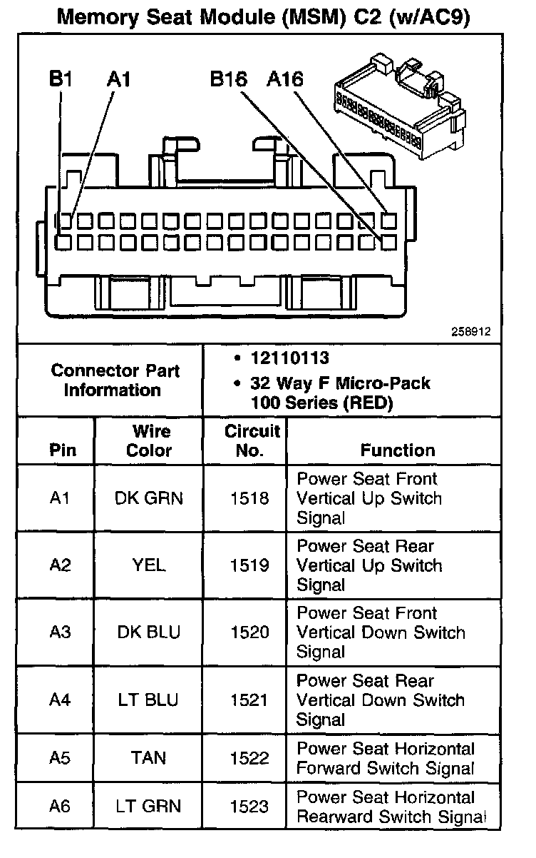 Memory Seat Module (MSM) C2 (W/AC9) (Part 1 Of 2):