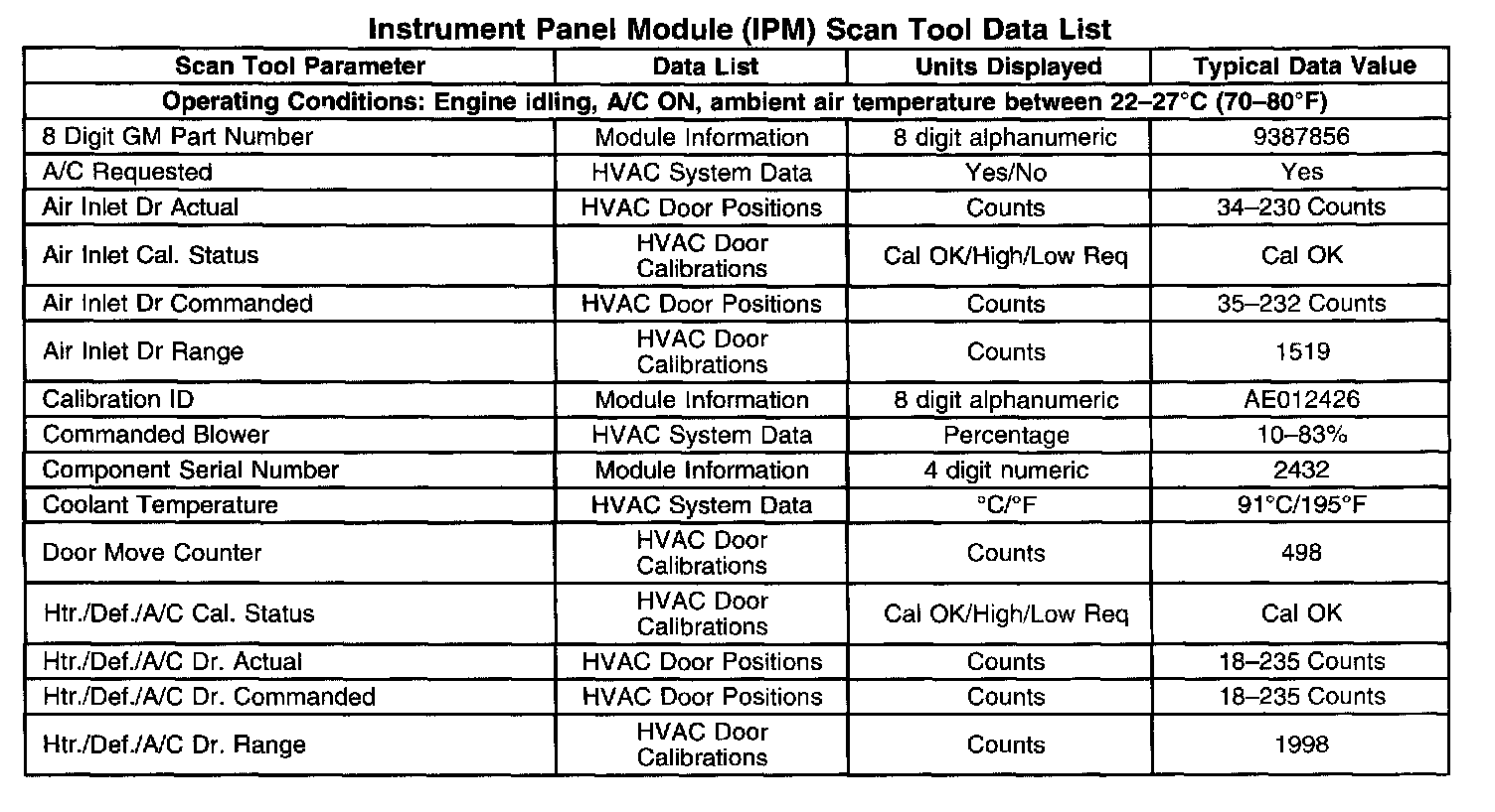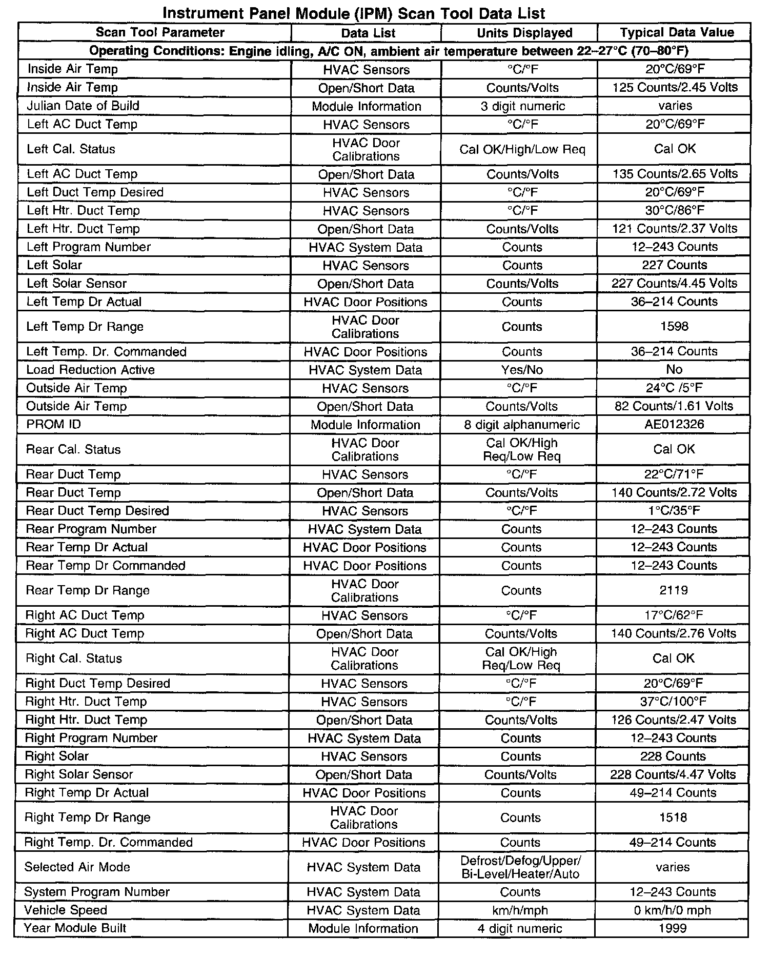Instrument Panel Module (IPM) Scan Tool Data List (Part 1 Of 2):