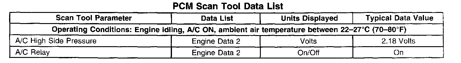 Scan Tool Data List - Powertrain Control Module (PCM)