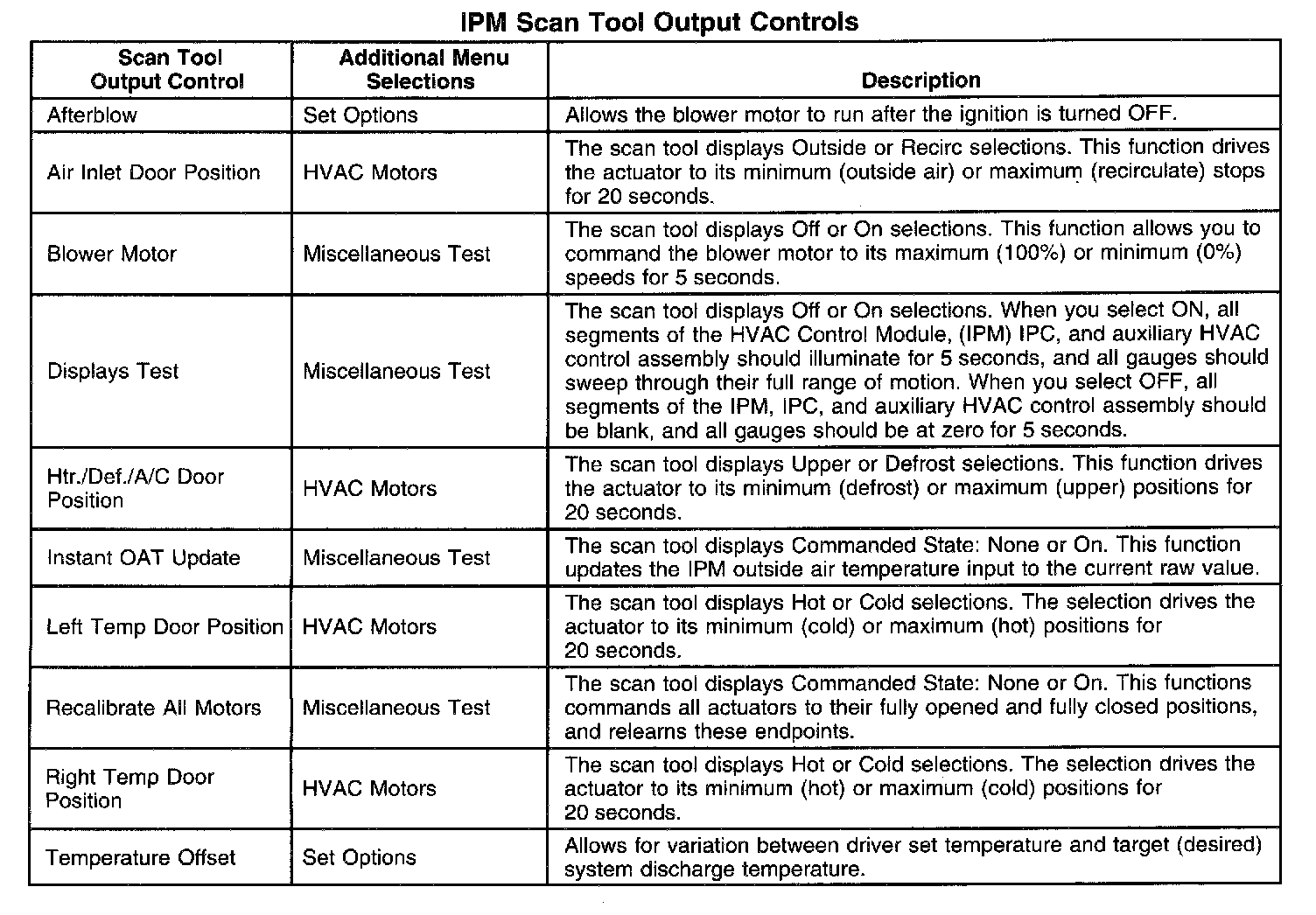 Scan Tool Output Controls - Instrument Panel Module (IPM)
