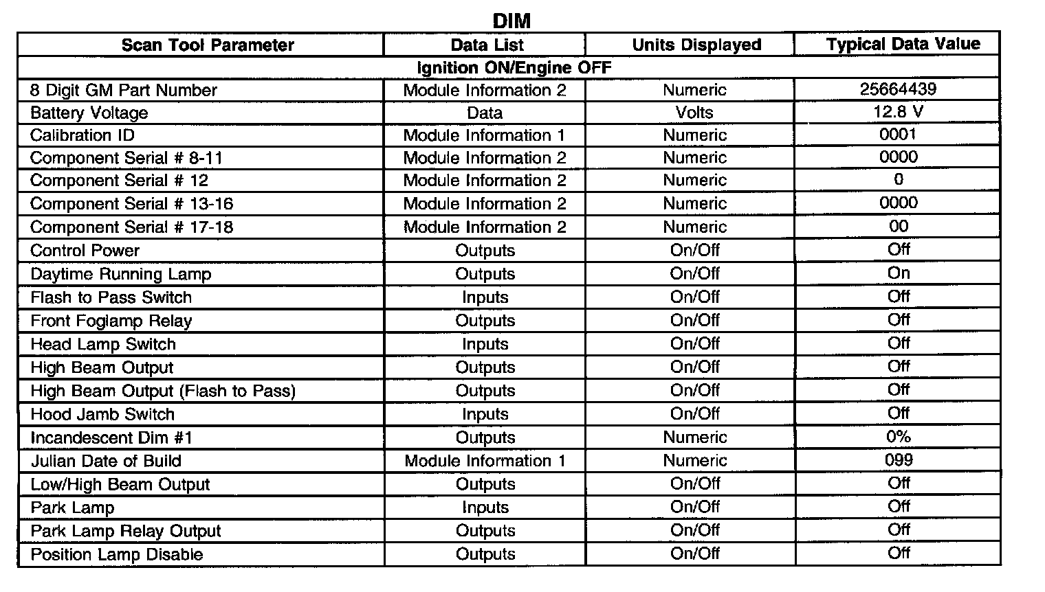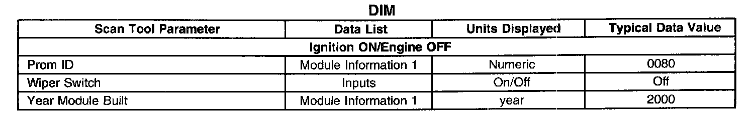 Scan Tool Data List - Dash Integration Module (DIM)