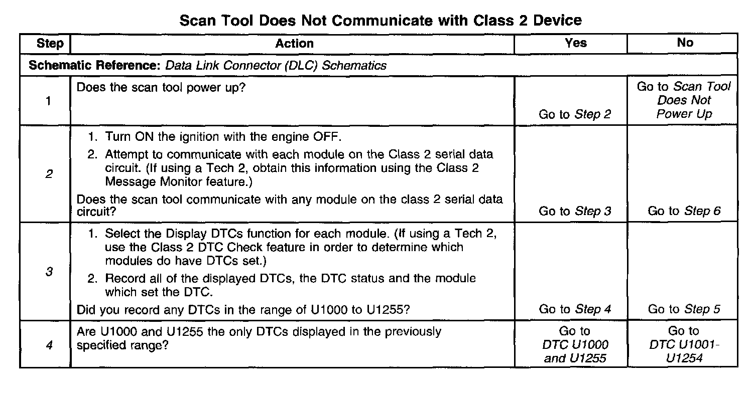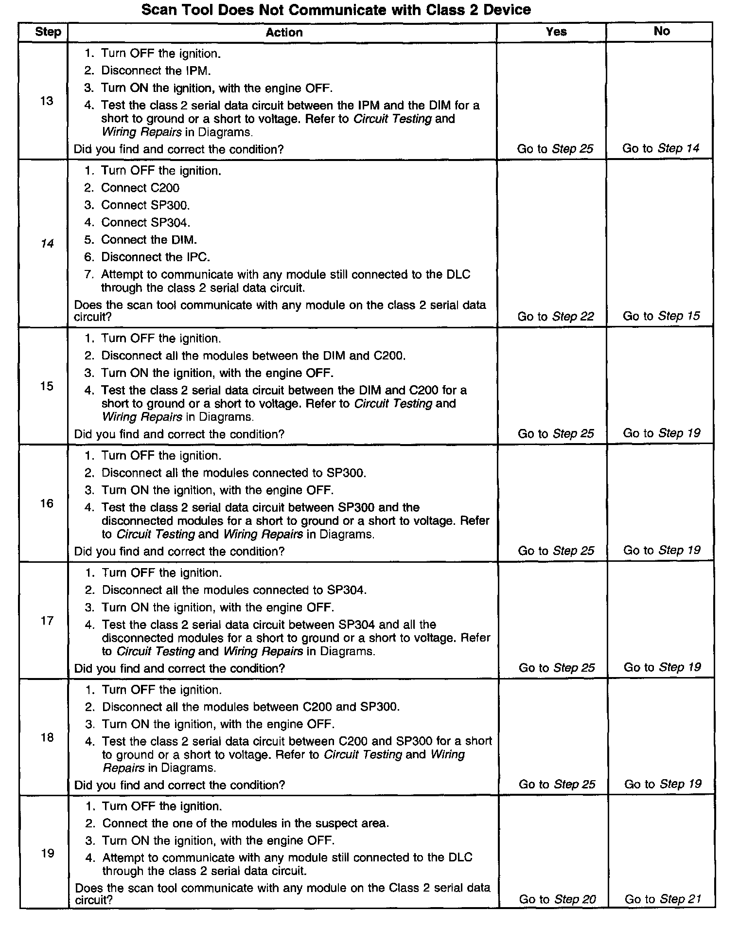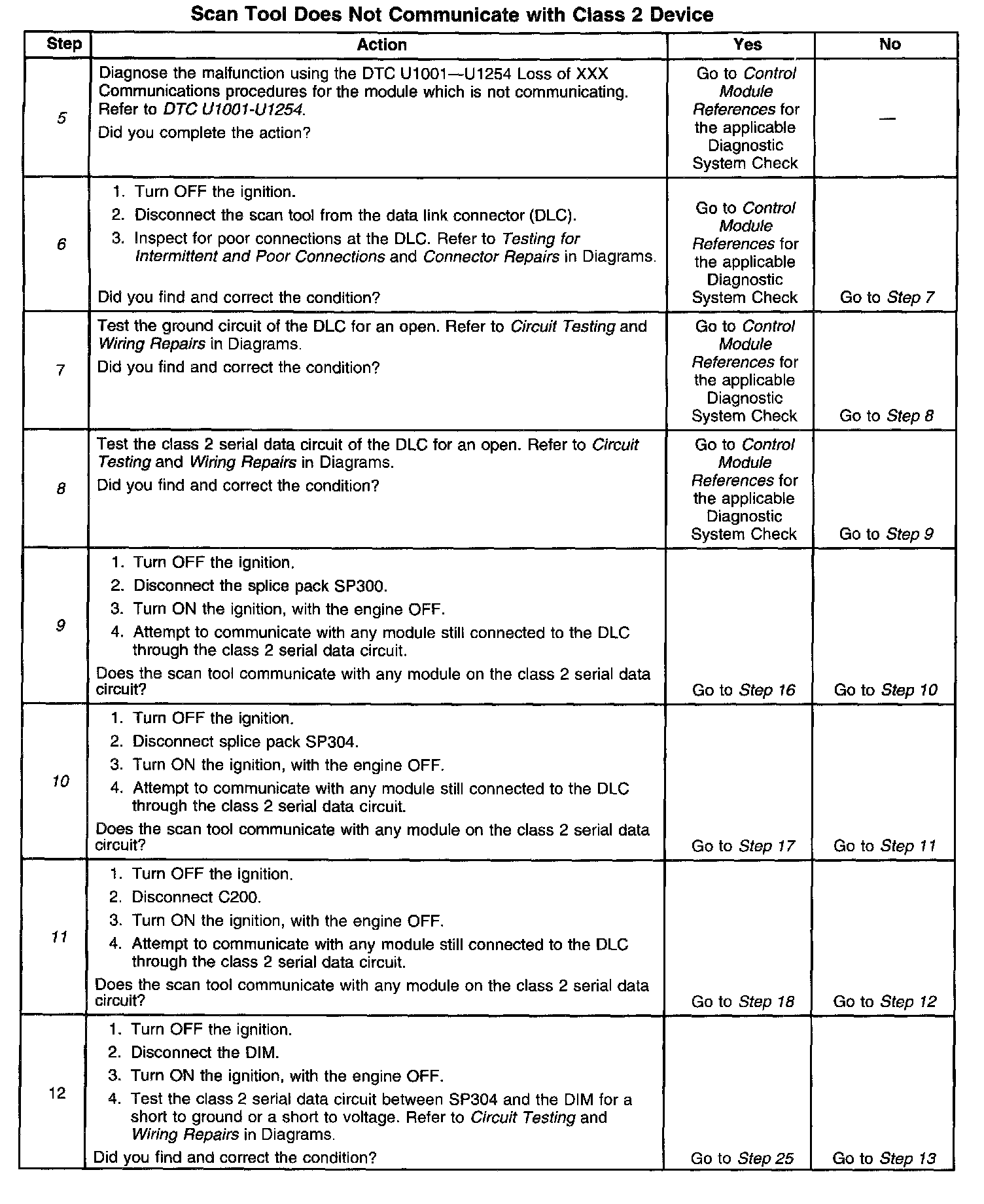 8. An open in the class 2 serial data circuit between the DLC and C200 will prevent the scan tool from communicating with any module. This condition will not set a DTC.