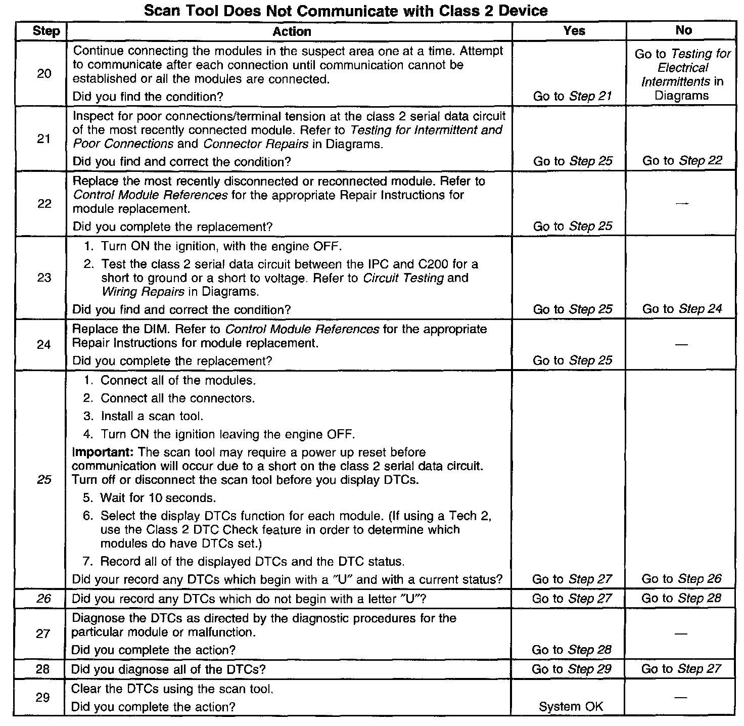 2. A partial malfunction in the class 2 serial data circuit uses a different procedure from a total malfunction of the class 2 serial data circuit.