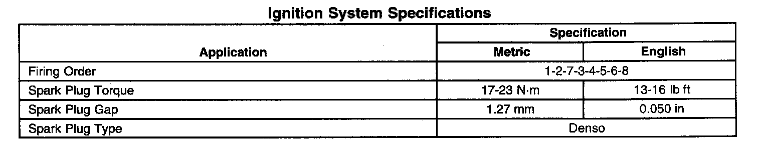 Ignition System Specifications: