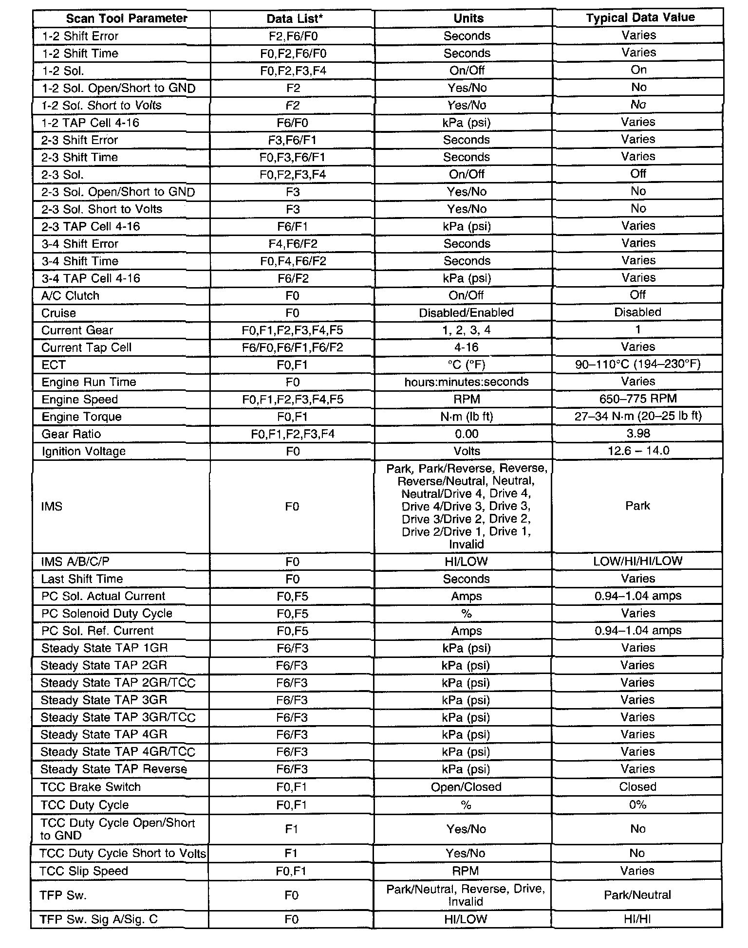 Transmission Scan Tool Data ListPart 1 of 2