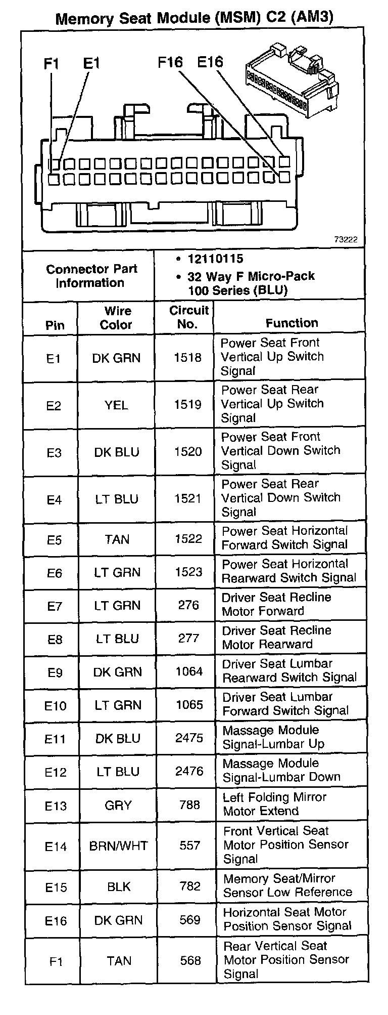 Memory Seat Module (MSM) C2 (AM3) (Part 1 Of 2):