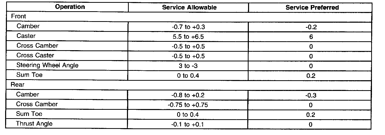 Wheel Alignment Specifications