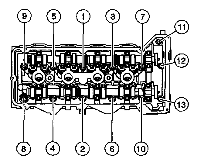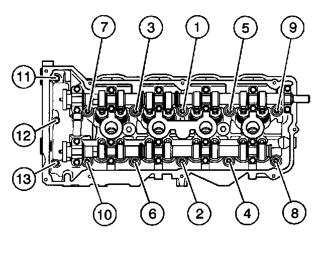 Right Cylinder Head:Tighten the right cylinder head bolts in the sequence shown.