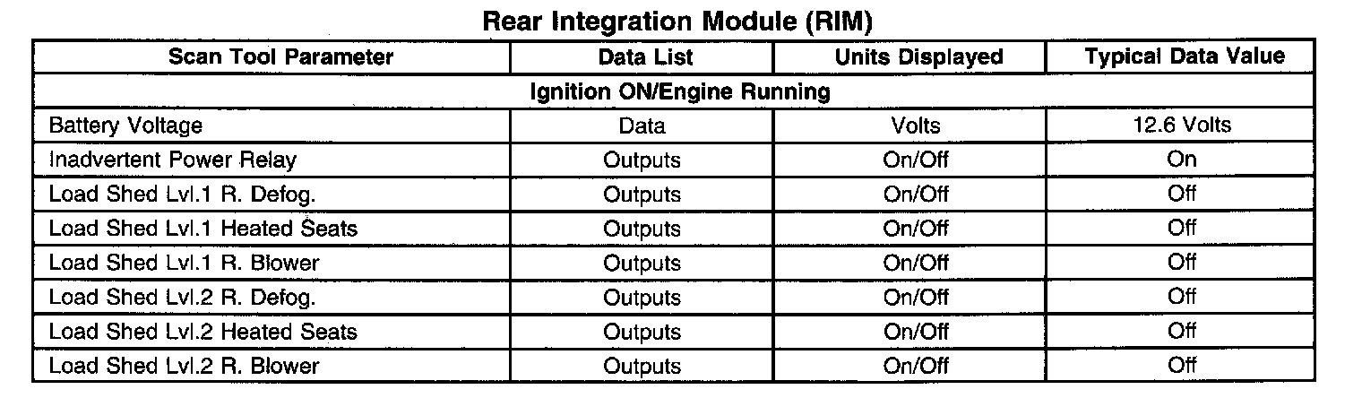 Scan Tool Data List - Rear Integration Module (RIM)