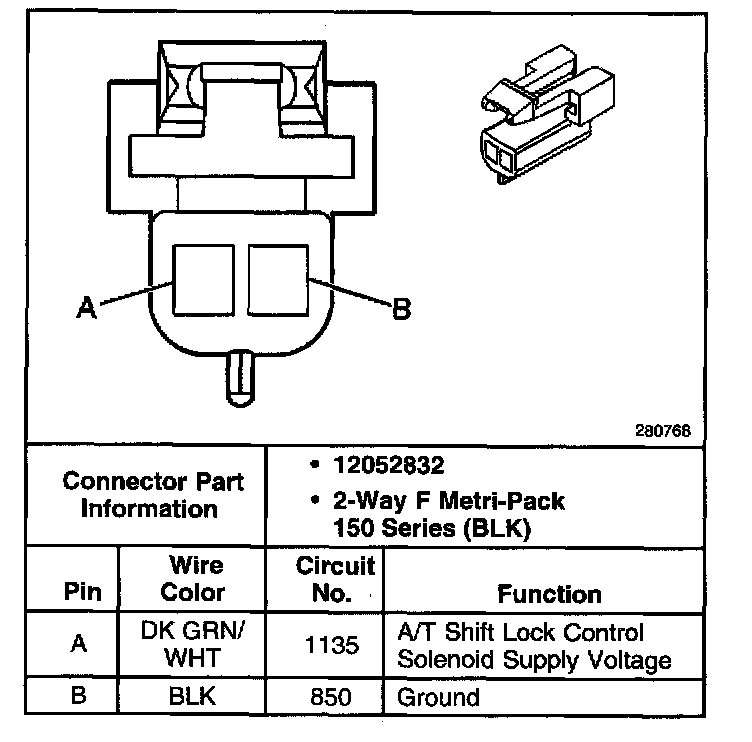 Shift Lock Control Connector End Views