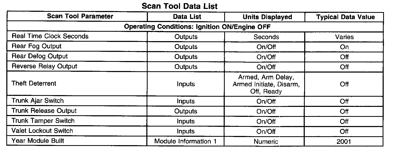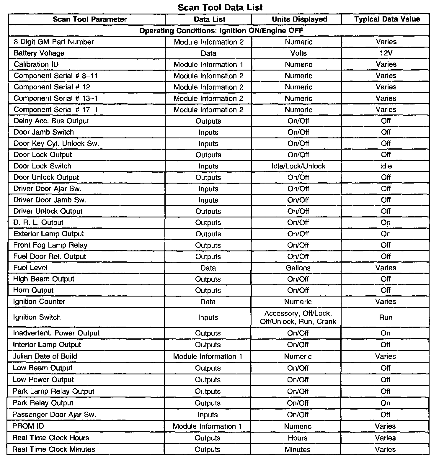 Scan Tool Data List