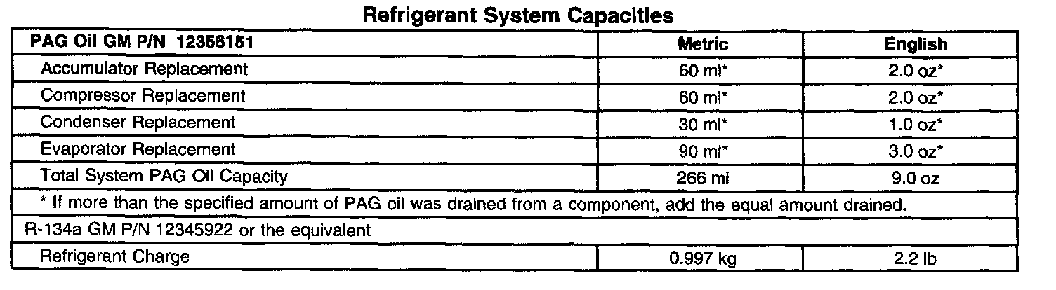 Refrigerant System Capacities:
