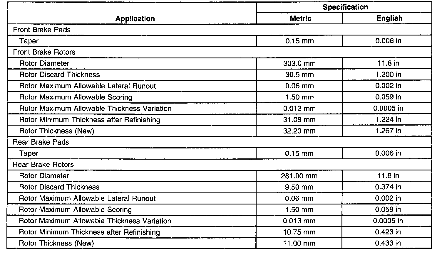 Brake System Specifications