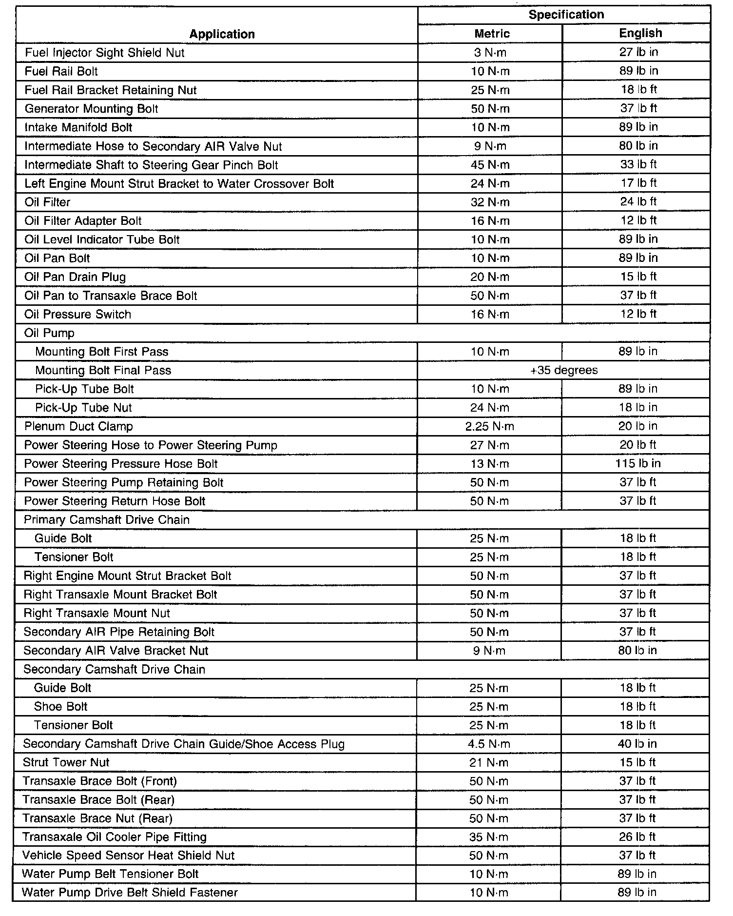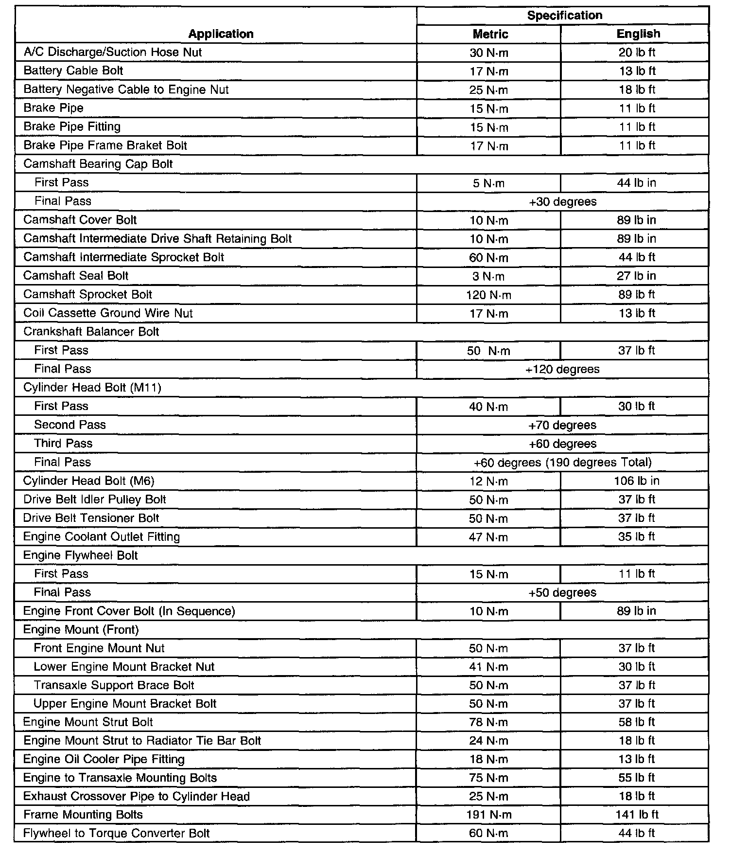 Fastener Tightening Specifications