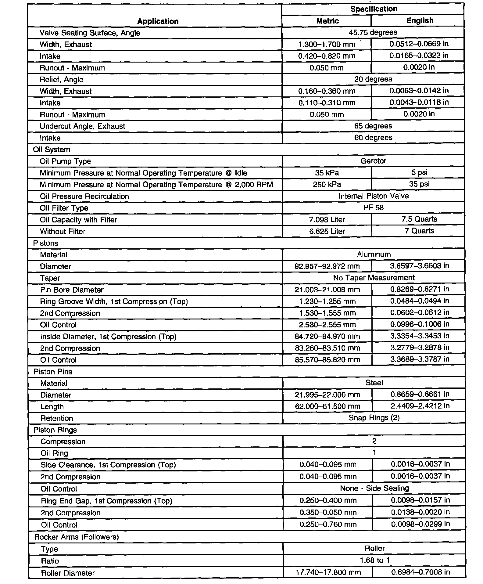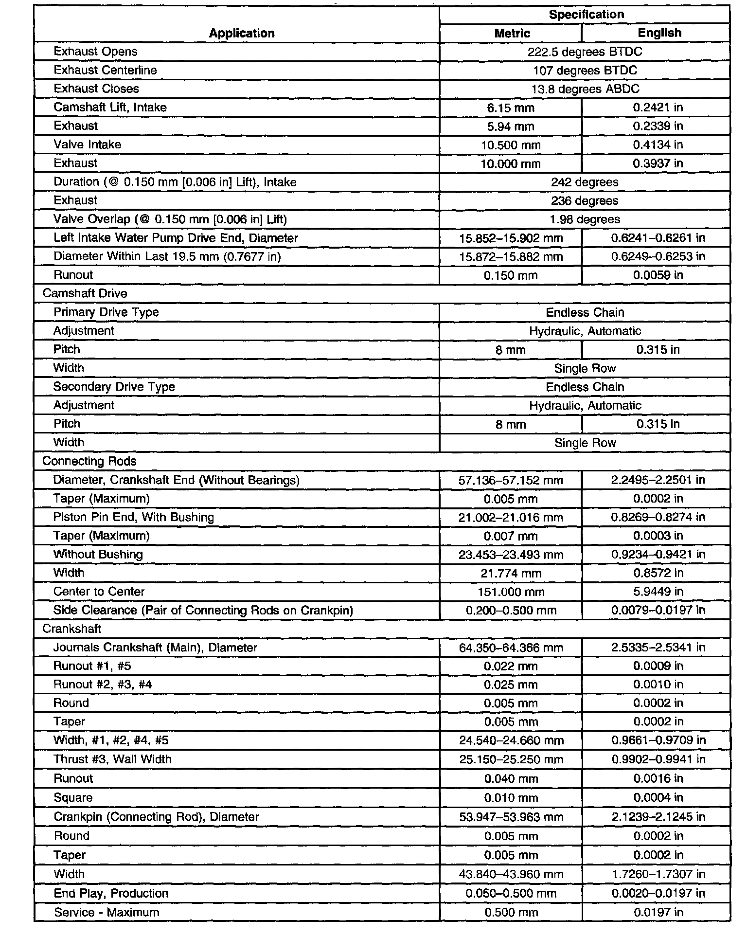 Engine Mechanical Specifications (LD8 (VIN Y)