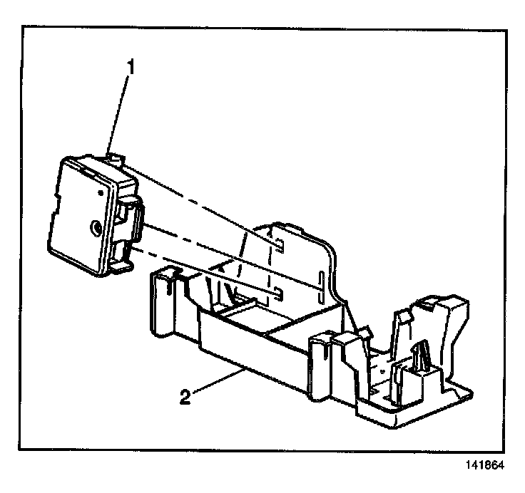 4. Remove the remote control door lock receiver (1) from the bracket (2).