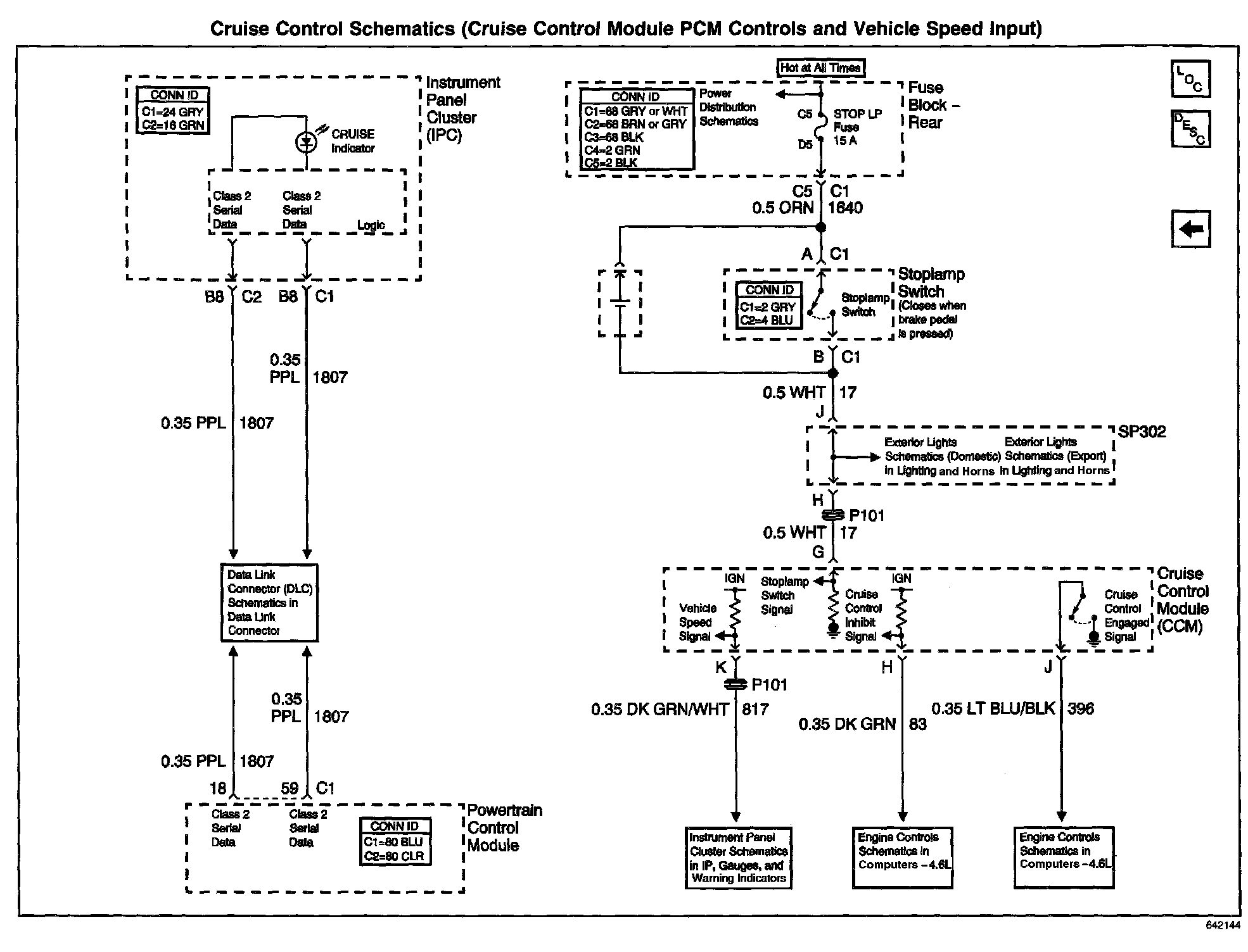 Cruise Control Schematics: Cruise Control Module PCM Controls and Vehicle Speed Input: