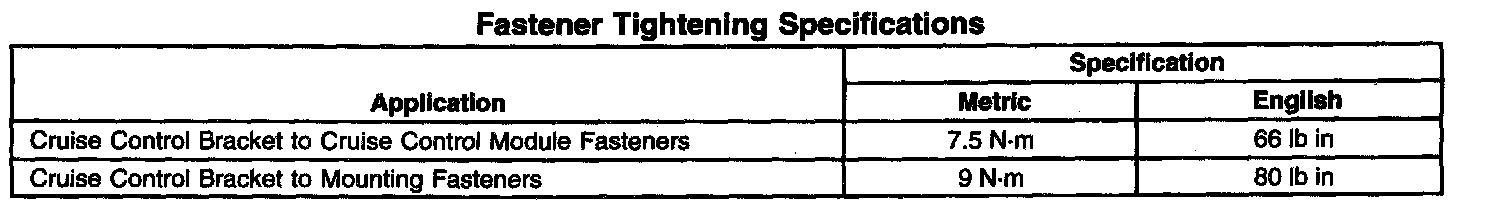 Fastener Tightening Specifications: