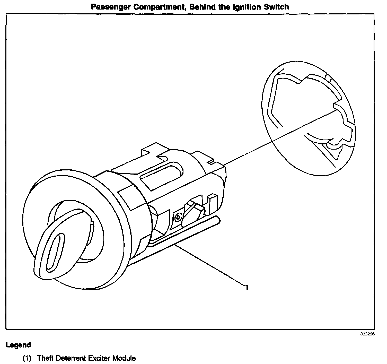 Left side of the instrument panel, right of the steering column on the ignition switch