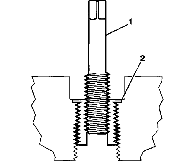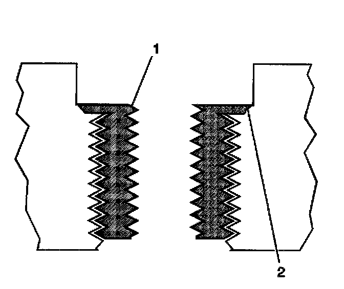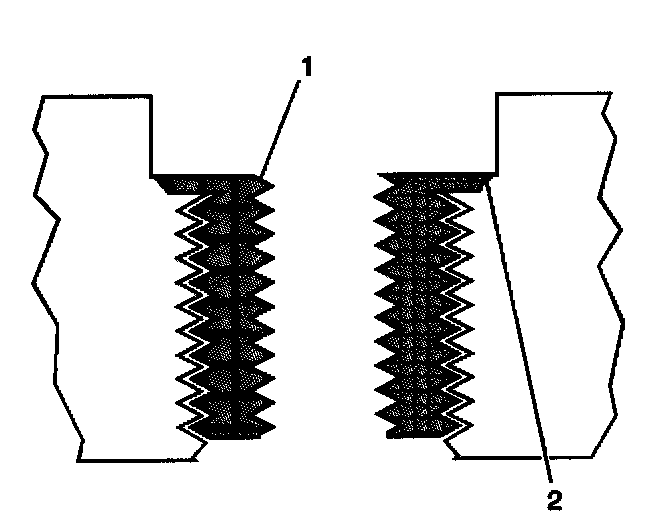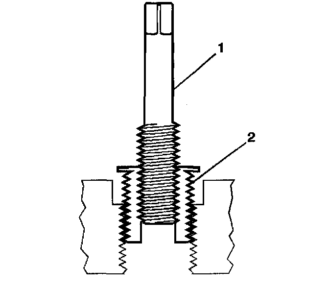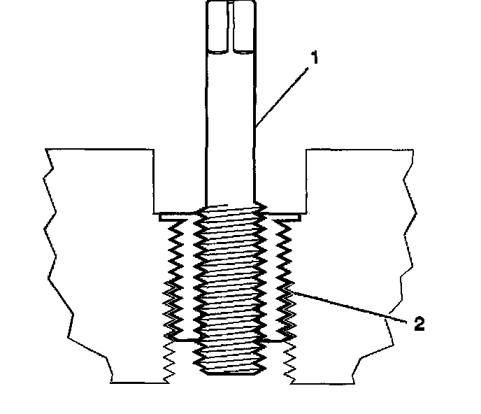 14. Inspect the insert (1) for proper installation (2) into the tapped hole.