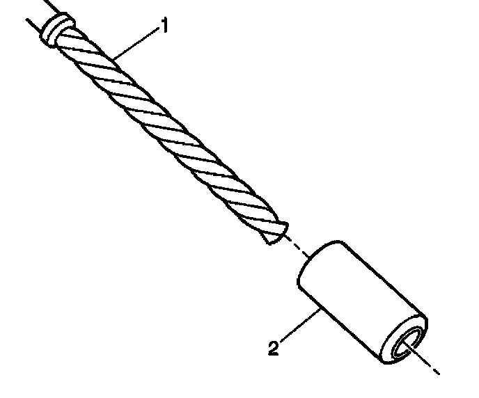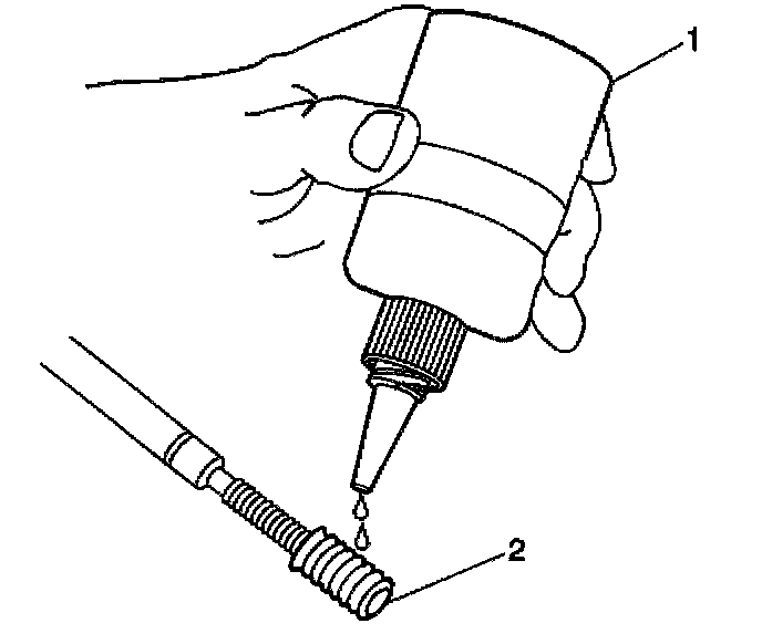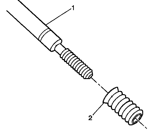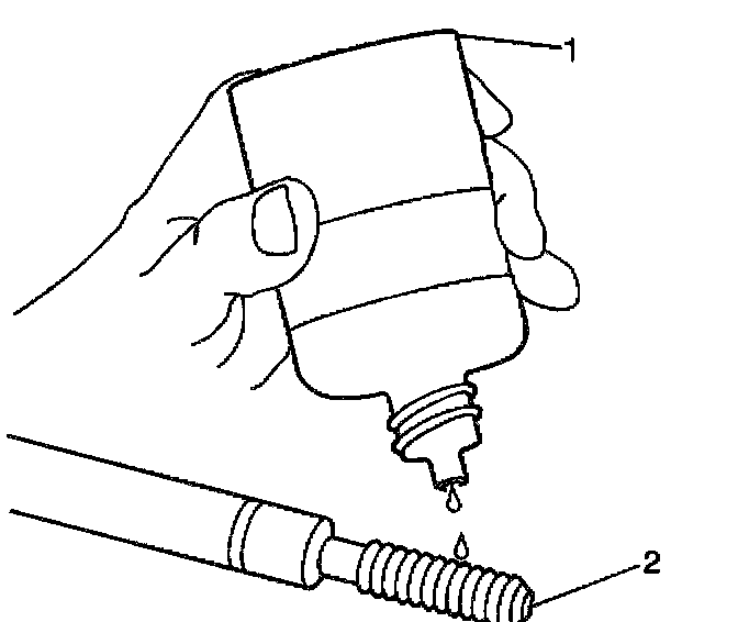 10. Apply threadlock sealant GM P/N 12345493, J 42385-109, LOCTITE 2770 or equivalent (1) to the insert OD threads (2).