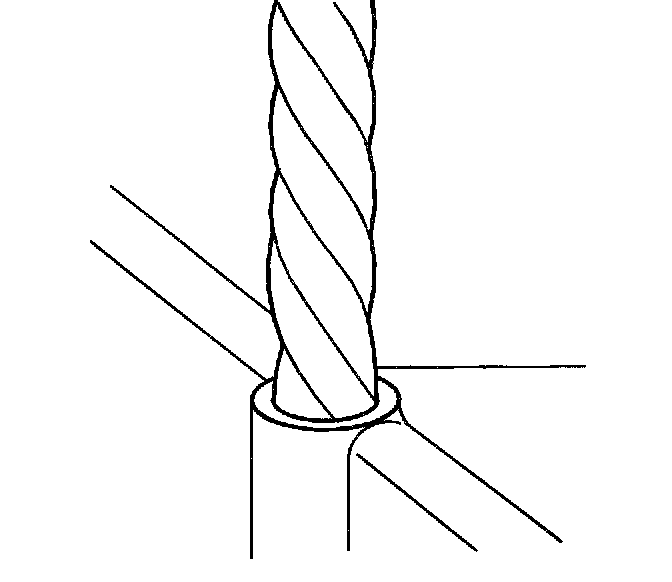 ^ During the drilling process, it is necessary to repeatedly remove the drill and clean chips from the hole and the flutes of the drill.