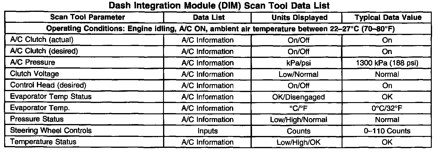 Dash Integration Module (DIM) Scan Tool Data List: