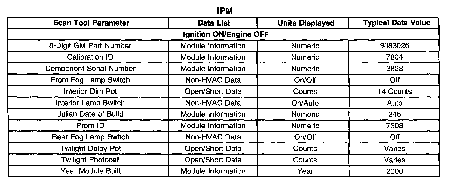 Scan Tool Data List - Instrument Panel Module (IPM)
