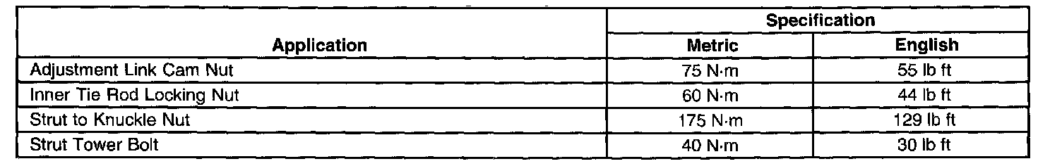 Fastener Tightening Specifications
