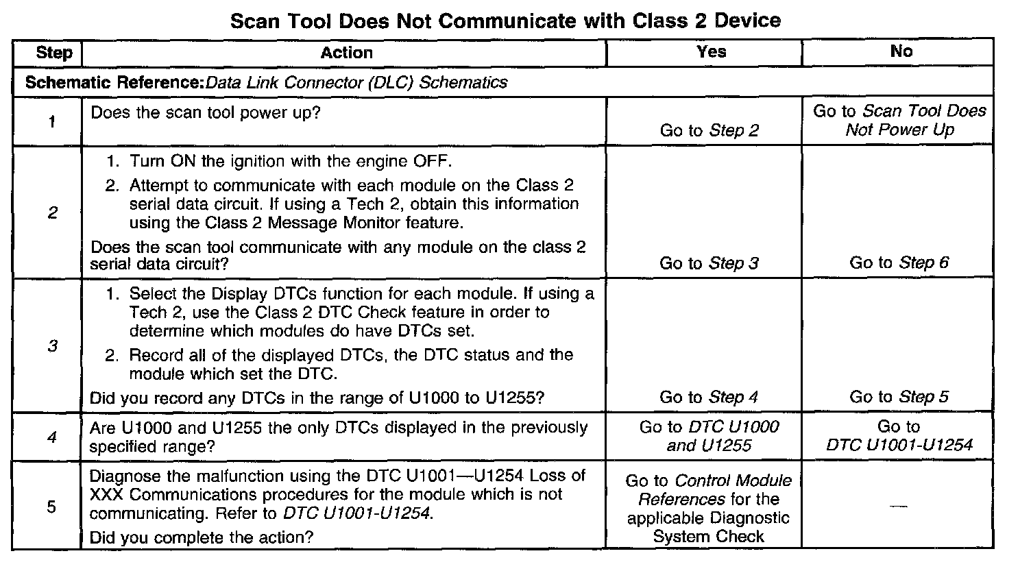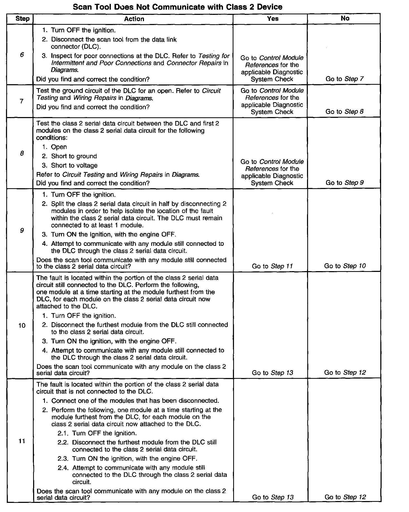8. An open between the DLC and the class 2 serial data circuit will prevent the scan tool from communicating with any module. This condition will not set a DTC.